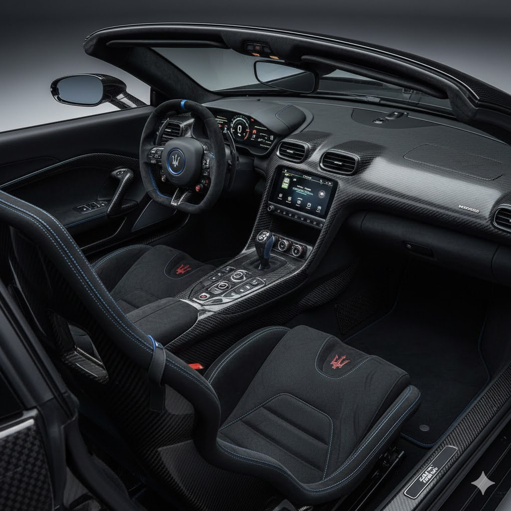 Masuk ke kabin Maserati MC20, nuansa minimalis langsung terasa. Interior dirancang fokus pada pengemudi, dengan layout sederhana namun modern.